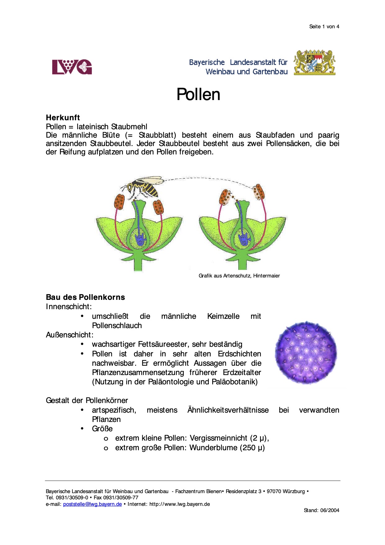 Pollen sind die männlichen Keimzellen der Blütenpflanzen und dienen der Bestäubung.